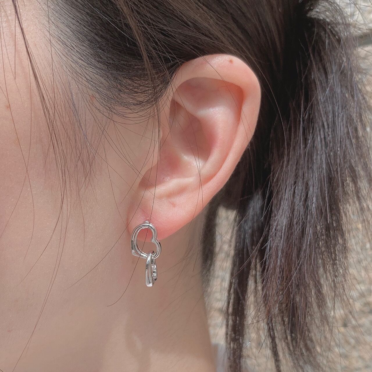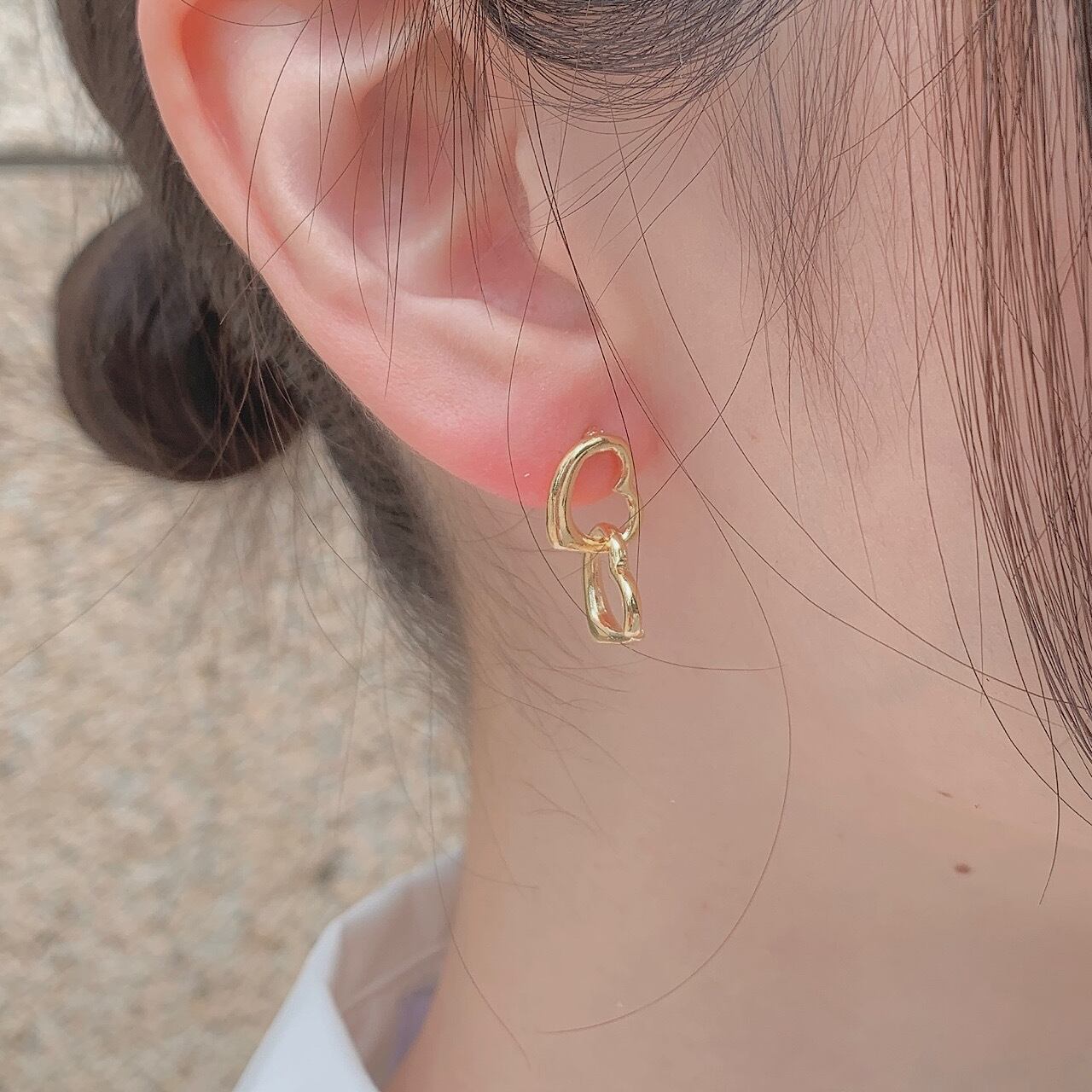 重なり合うハートがカジュアルに演出してくれるハートチェーンピアス 普段使いはもちろんデートやイベントごとなど特別な日にもお使いいただけます。 Silver 、 Gold の2色展開となっております。 サイズ 1cm × 2cm