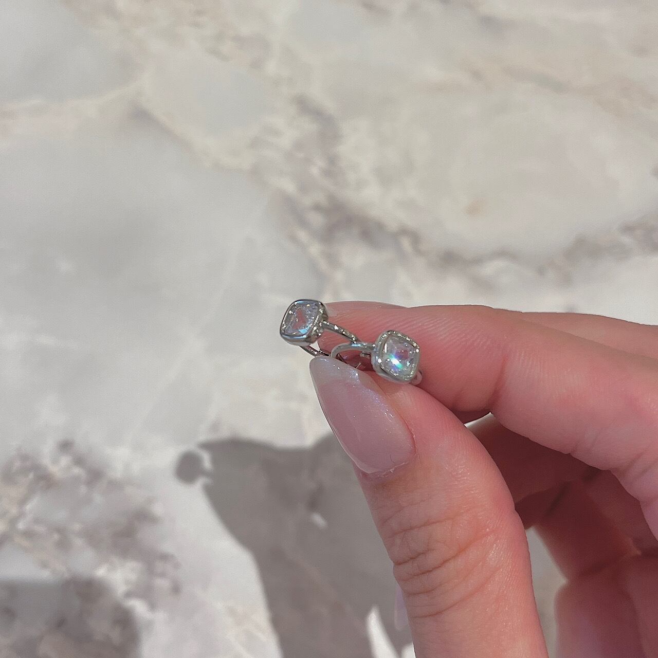 シンプルで控えめなストーンがついた ストーンフープピアス。 いろんなシチュエーションで ご使用いただけます。 1.3cm × 1.3cm